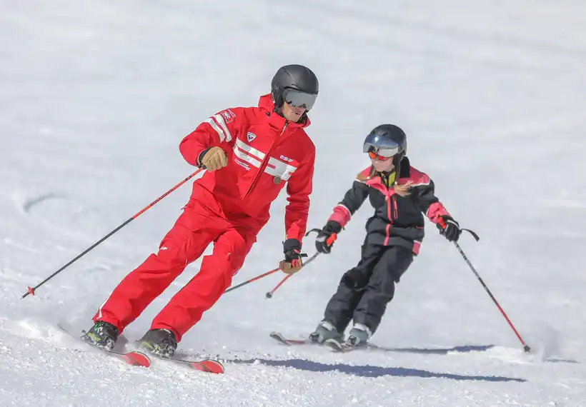 - D'un fauteuil Tandem, votre siège est lié au ski du moniteur, lui permettant de vous accompagner et de vous guider dans votre descente et apprécier les pistes et paysages de la station.